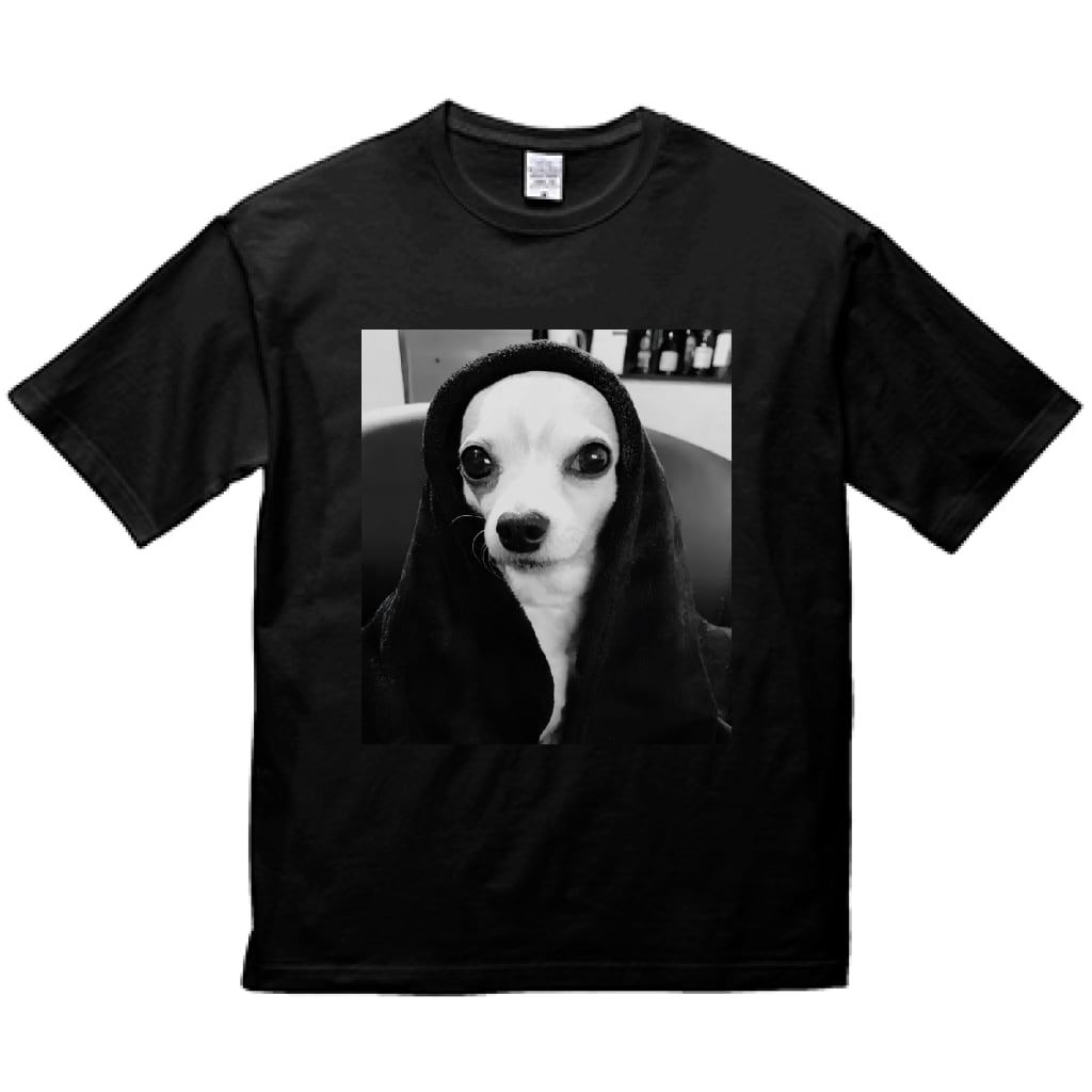 チワワのロビンを写し出した、モノクロームのフォトTシャツ。